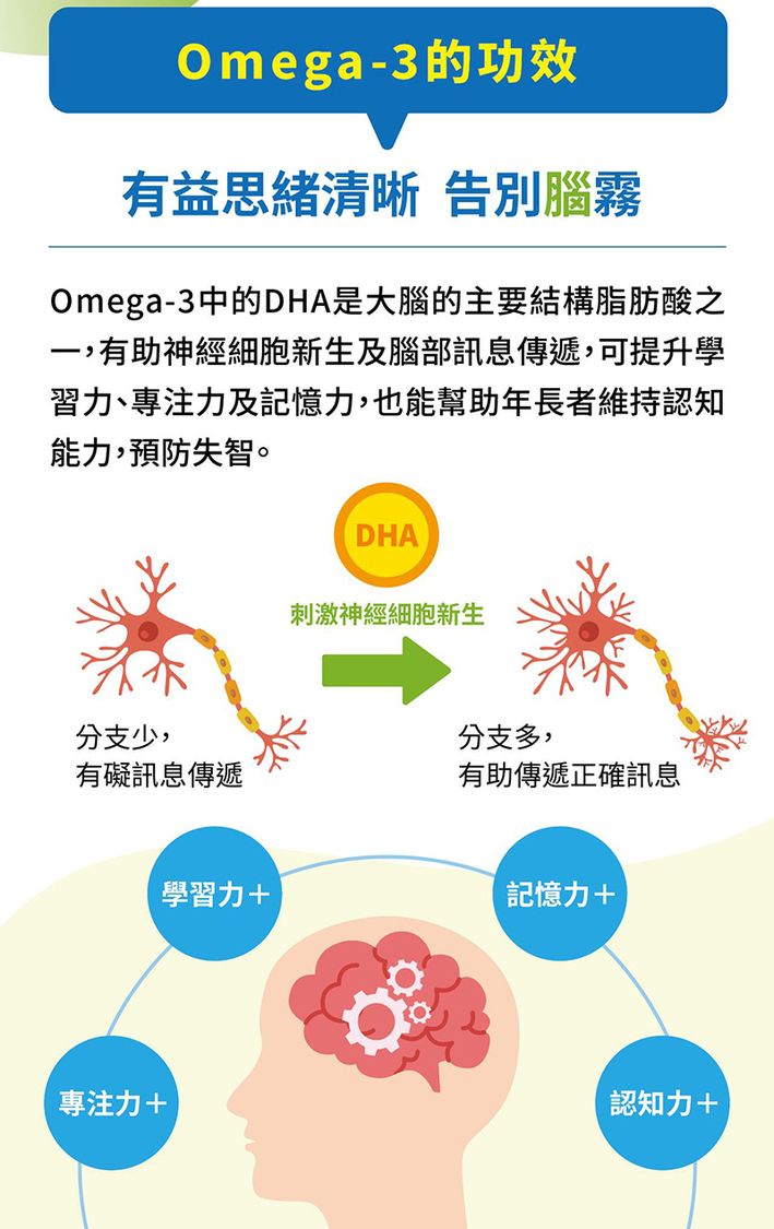 Omega-3脂肪酸是用來補腦噢 ! 能幫助提升腦力、記憶力,預防老人癡呆 :