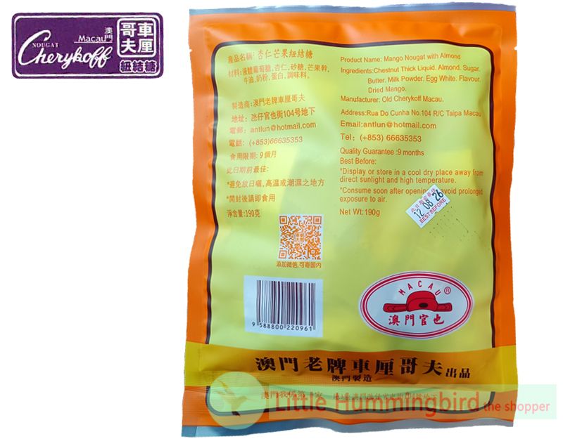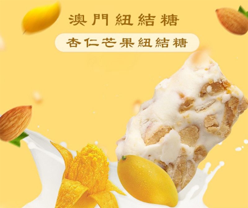 特點 : 味道香口,小甜,奶味濃郁,口感非常煙韌,不黏牙;香軟的芒果味和裏面加有杏仁,入口軟身又有口感。