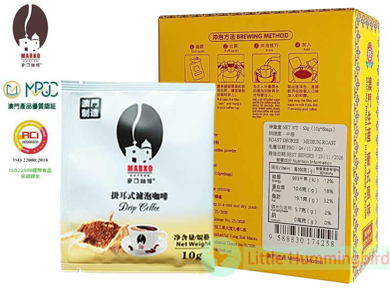 產品內容 : 野生麝香貓掛耳咖啡(小盒裝) 10g X 6小包